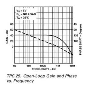 音叉液位開關(guān)模擬采樣回路采用的運放型號為AD8544,下圖顯示了AD8544放大器的開環(huán)增益和相位響應(yīng)與頻率的關(guān)系。這是一款10MHz放大器,支持軌到軌輸出,并且只有4fA的偏置電流。主補償電路的-90°相位延遲從大約1KHz達-90°開始,在約10KHZ時達到-135°,但在1MHz以上將越過-235°。在實際應(yīng)用中,由于額外的增益級和輸出級電路,所有放大器除了基本的主補償延遲外,都還有高頻相位延遲。典型的額外相位延遲從大約GBF/10開始。