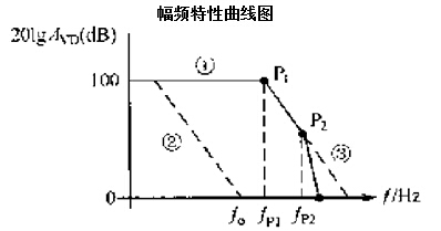 AD8544的內(nèi)部是一個多級放大器。其對數(shù)幅頻特性如圖1所示中的曲線①(實線)。對數(shù)幅頻特性曲線在零分貝以上的轉(zhuǎn)折點稱為極點。圖中,稱P1 P2點為極點。極點對應(yīng)的頻率稱為轉(zhuǎn)折頻率,如fp1,fp2,第一個極點,即頻率最低的極點稱為主極點。 在極點處,輸出信號比輸入信號相位滯后45°,幅頻特性曲線按-20dB/10倍頻程斜率變化,每十倍頻程輸出信號比輸入信號相位滯后90。極點越多,越容易自激,即越不穩(wěn)定。為使集成運放工作穩(wěn)定,需進行相位(頻率)補償。