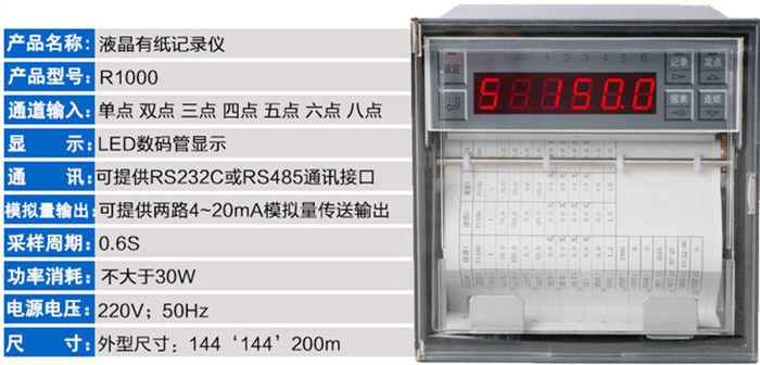LK-R1000有紙記錄儀8路萬能輸入液晶顯示有紙記錄儀,可輸入標(biāo)準(zhǔn)電流、標(biāo)準(zhǔn)電壓、熱電偶、熱電阻等多種信號。具有傳感器配電輸出、繼電器報(bào)警輸出功能;采用高精度熱敏打印機(jī),實(shí)現(xiàn)數(shù)據(jù)、曲線和混合打??;具有高清晰OLED液晶顯示功能;獨(dú)立的紙倉設(shè)計(jì),使打印紙安裝方便快捷。