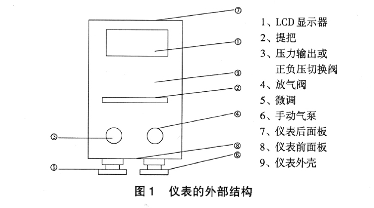 10、氣泵及微調:氣泵為手動打壓系統,微調為細調壓力值,當壓力顯示值上下偏差時,進行微調。儀表為靜態加壓系統,因此加壓到滿量程后,數值下降速度快。在實際操作使用中,請打壓到滿量程超出報警后儀表顯示OVERRANGE!P穩定2-3分鐘,再用微調緩慢調整,調準顯示值(反復上下微調幾次)。