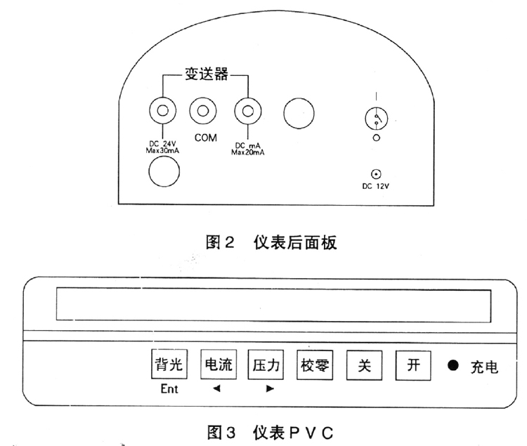 2、校零鍵:測量前,按一下此鍵,儀表自動將傳感器的零點值采集并送CPU進行處理,保證儀表所測數據為實際壓力值。