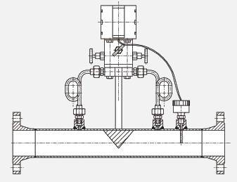 3、 水平安裝時,楔式差壓元件應(yīng)與管道中心線成90度。對于垂直安裝,由于取壓點之間輕微的靜壓影響必須注意差壓變送器調(diào)零楔形流量計上游側(cè)最小直管段